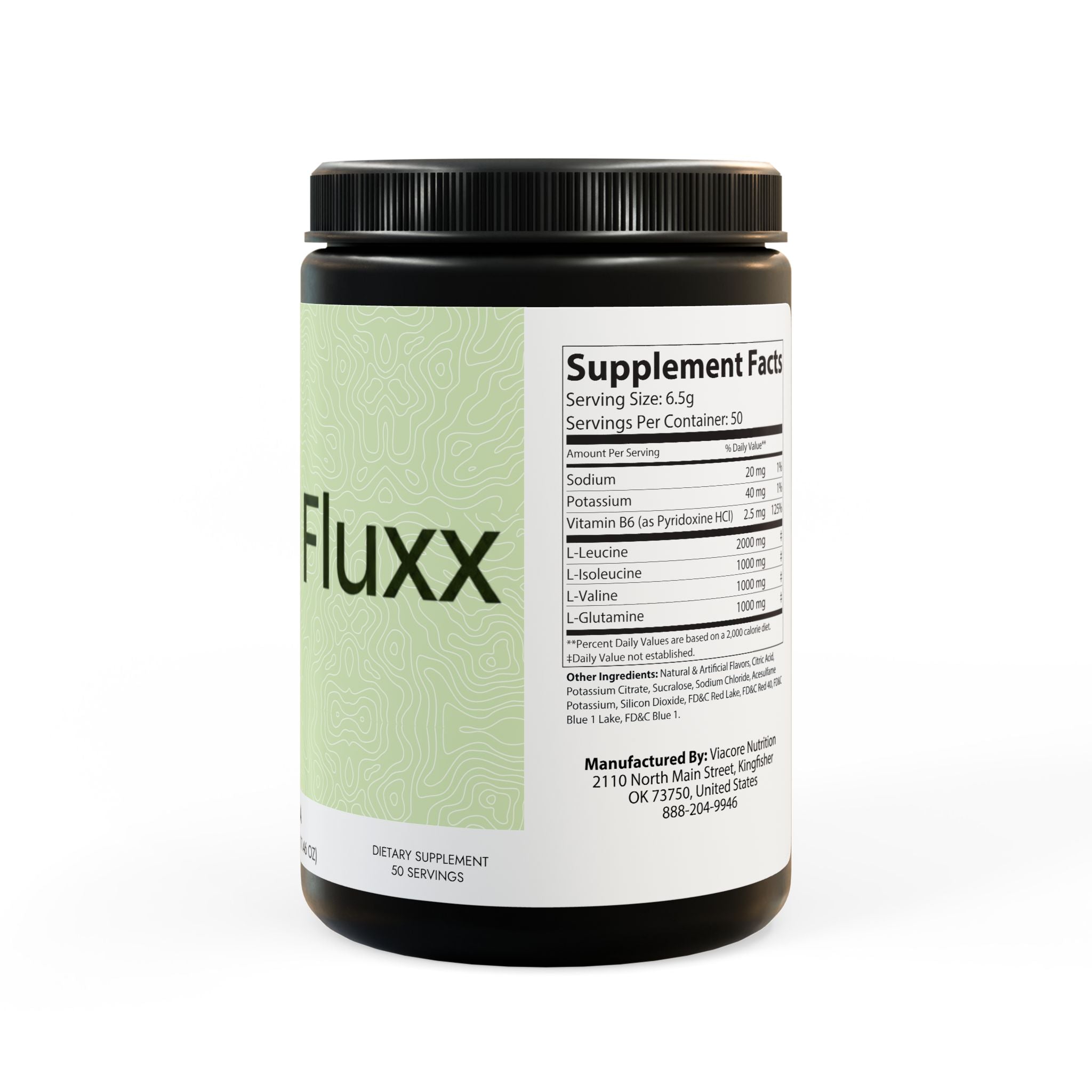 Key ingredients include Sodium, Potassium, Vitamin B6 (as Pyridoxine HCl), L-Leucine, L-Isoleucine, L-Valine, and L-Glutamine.
