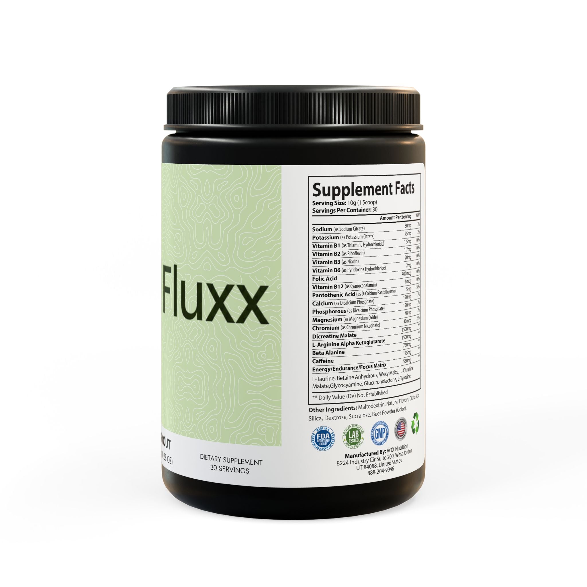Ingredients: Sodium (as Sodium Citrate), Potassium (as Potassium Citrate), Vitamin B1 (as Thiamine Hydrochloride), Vitamin B2 (as Riboavin), Vitamin B3 (as Niacin), Vitamin B6 (as Pyridoxine Hydrochloride), Folic Acid, Vitamin B12 (as Cyanocobalamin), Pantothenic Acid (as D-Calcium Pantothenate), Calcium (as Dicalcium Phosphate), Phosphorous (as Dicalcium Phosphate), Magnesium (as Magnesium Oxide), Chromium (as Chromium Nicotinate), Dicreatine Malate, L-Arginine Alpha Ketoglutarate, Beta Alanine, Caffeine, L-Taurine, Betaine Anhydrous, Waxy Maize, L-Citrulline, Malate ,Glycocyamine, Glucuronolactone, L-Tyrosine. Other Ingredients: Maltodextrin, Natural Flavors, Citric Acid, Silica, Dextrose, Sucralose, Beet Powder (Color).